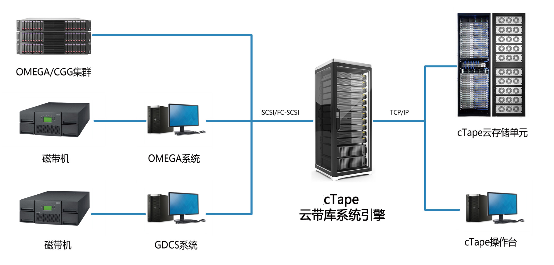 cTape云帶庫系統基于云計算、大數據以及虛擬帶庫技術,將磁盤仿真成物理磁帶,把云存儲系統模擬成物理磁帶庫,從而實現用磁盤代替磁帶來存儲數據的目標。主要應用于石油石化、測繪、電力等行業的數據轉化存儲需求。